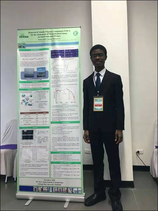 On Monday 5th November, Oral PPT presentations commenced immediately after the opening ceremony, comprising morning and afternoon sessions.Princewas scheduled to present at 16:15 to 16:30, on the topic: “REMOVAL OF VOLATILE ORGANIC COMPOUNDS (VOCS) FOR THE ABATEMENT OF PHOTOCHEMICAL SMOG: AN ENVIRONMENTAL MENACE”, in the section of Environment.