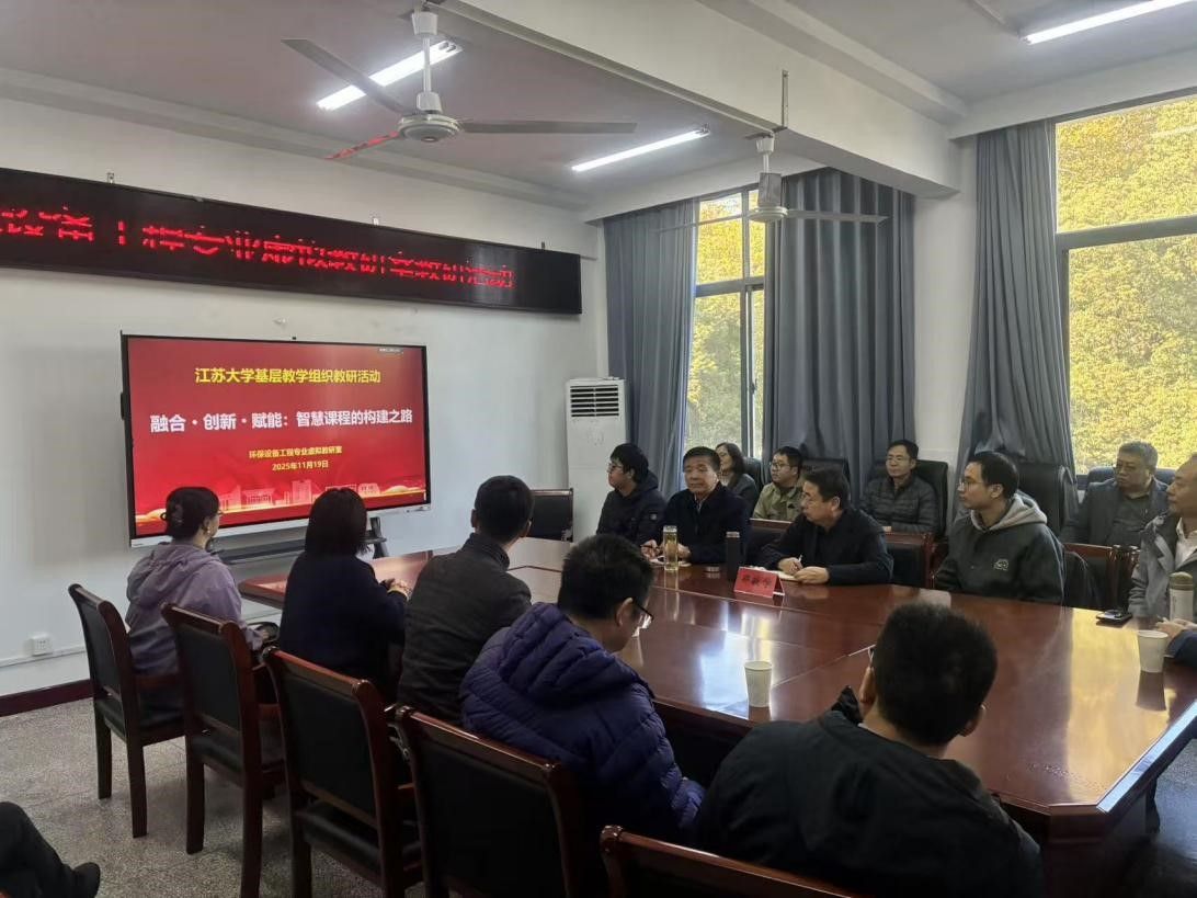 On the afternoon of November 19th, the grassroots teaching organization of the School of Environmental and Safety Engineering, the Virtual Teaching and Research Office of Environmental Protection Equipment Engineering (hereinafter referred to as the "Teaching and Research Office"), held a teaching and research activity with the theme of "Integration, Innovation, Empowerment: The Road to Building Smart Curriculum" in Conference Room 310 of the Environmental Protection Building. All teachers in the Teaching and Research Office participated in the activity, which was presided over by Professor Lu Ziyang, the head of the Department of Environmental Protection Equipment Engineering. Two school teaching supervisors, Zhang Jiuru and Zheng Minxue, visited the site for inspection and guidance.