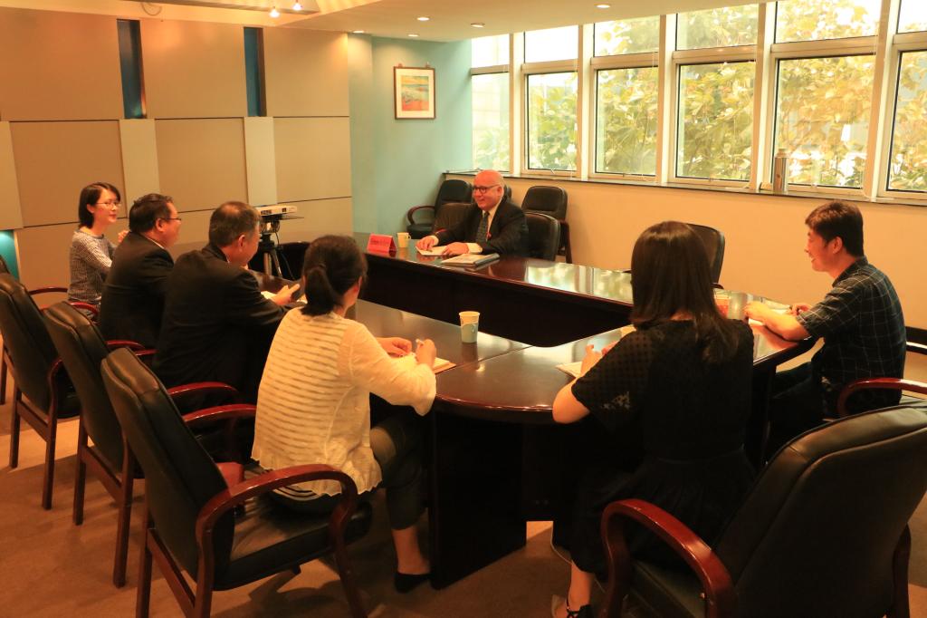Prof. Simon Pollard DSc FREng, Pro-Vice-Chancellor of Cranfield University, England, visited School of the Environment and Safety Engineering on invitation on the afternoon of 10 September, 2018. During his visit, Prof. Pollard had a meeting with Mr. Wang Shaohua, Director of the talent engineering office in Jiangsu University, Prof. Wu Xiangyang, Dean of School of the Environment and Safety Engineering, Prof. Du Daolin, Deputy Dean of School of the Environment and Safety Engineering, and the representatives of teachers. The meeting was presided over by Prof. Du Daolin.