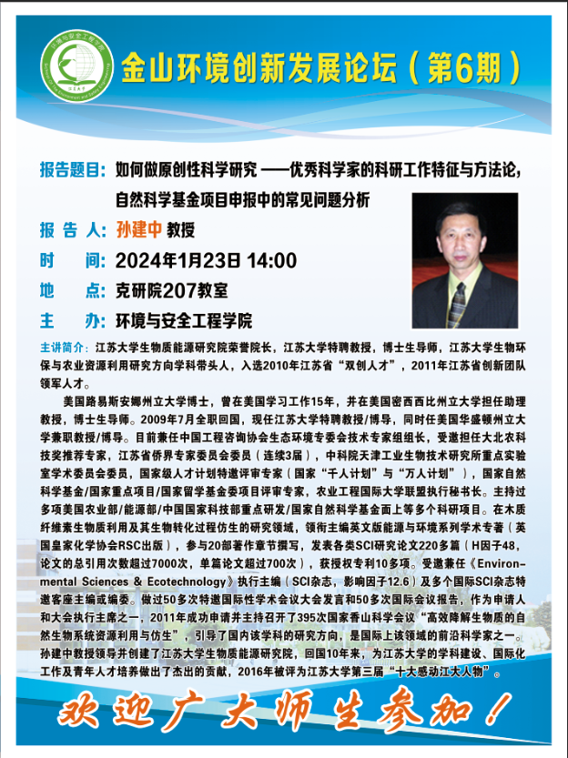 报告人简介:孙建中,yl6809永利集团生物质能源研究院荣誉院长,yl6809永利集团特聘教授,博士生导师,yl6809永利集团生物环保与农业资源利用研究方向学科带头人,入选2010年江苏省“双创人才”,2011年江苏省创新团队领军人才。