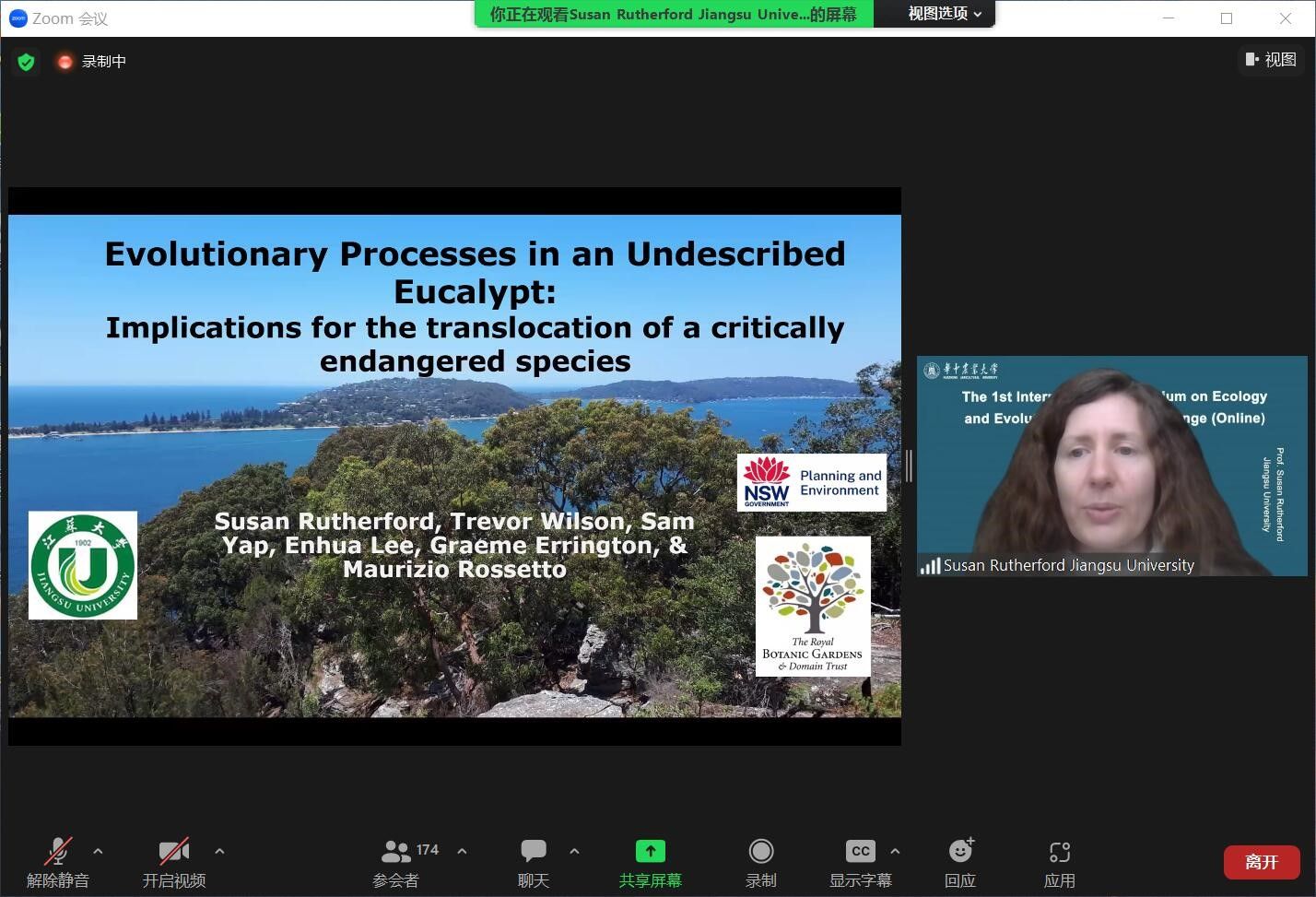 yl6809永利官网集团全职外籍教师Susan Rutherford研究员受邀就我校在生态与进化领域的最新研究进展做了主题为“Evolutionary processes in an underscribed eucalypt: Implications for the translocation of a critically endangered species”的大会报告。