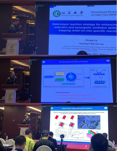 在此背景下,太阳燃料国际学术研讨会(International Workshop on Solar Fuel,IWSF)于2021年12月11-13日在中国武汉晴川假日酒店举办。本次研讨会将由中国地质大学(武汉)主办、深圳技术大学和长沙学院协办。我院逯子扬老师应组委会邀请参加了本次会议,并结合近几年在印迹光催化技术方面的研究工作,做了题目为“Heterotopic reaction strategy for enhancing selective reduction and synergistic oxidation ability through trapping metal ion into specific reaction site”的邀请报告。本次研讨会的目的是为太阳燃料领域的学术交流提供平台,辨明这一快速发展领域的关键科学问题,并为来自不同国家和地区的研究人员建立联系。
