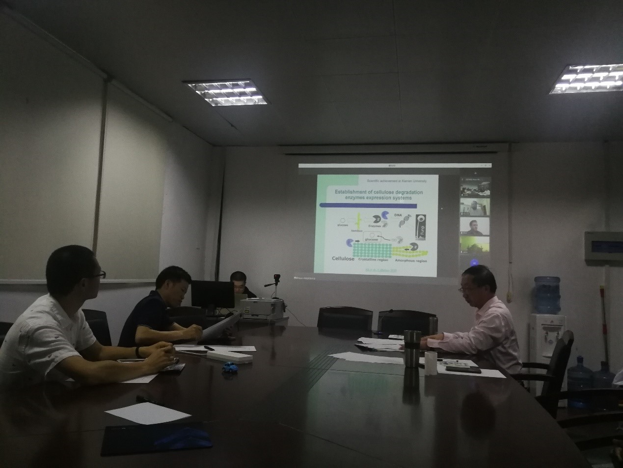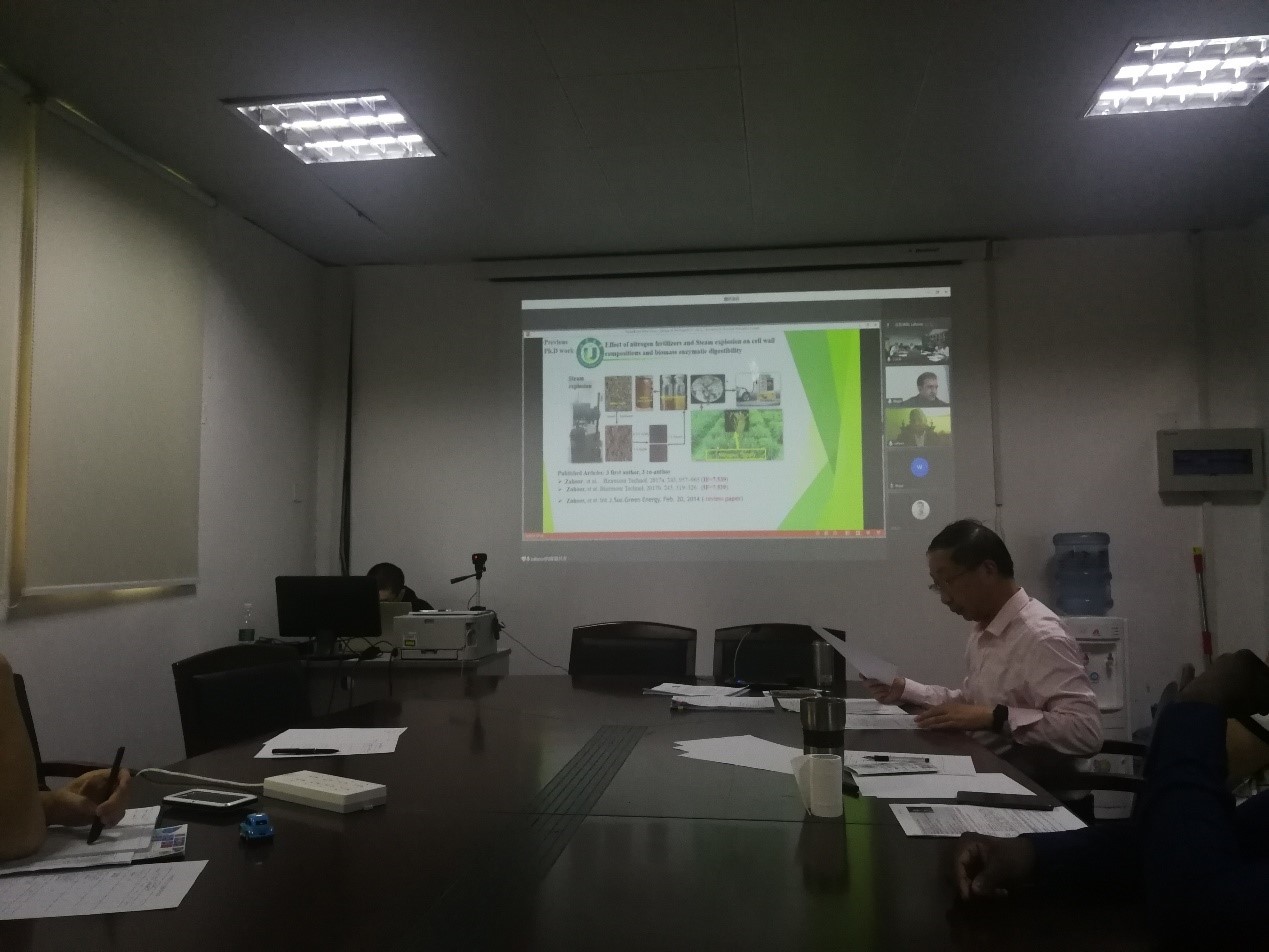 2021年6月17日上午10:00,应我院孙建中教授和朱道辰副研究员的邀请,中国科学院青岛生物能源与过程研究所博士后Nasir Ali (巴基斯坦),韩国北庆大学的MUHAMMAD WAJID ULLAH博士,中科院广州能源研究所zahoor博士,韩国岭南大学Sethupathy博士分别在线/线下做了题为Estabilishment of cellulose degradation enzyme expression systems, Bacterial cellulose and its medical application,valorization of biomass-ligin through integrated biological and chemical methods, Biotansformation of liginin into valulable compounds的学术报告。四位专家在各自领域取得了突出成绩,学术报告内容与我院主要研究方向高度贴合,我院多名师生参加报告会。会后,雍阳春院长,孙建中教授,蒋建雄研究员,刘俊研究员,朱道辰副研究员与几位专家就双方感兴趣的话题进行了深入交流,并探讨了可能的合作方向。