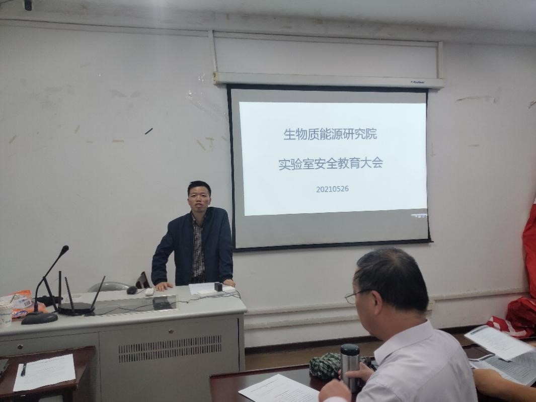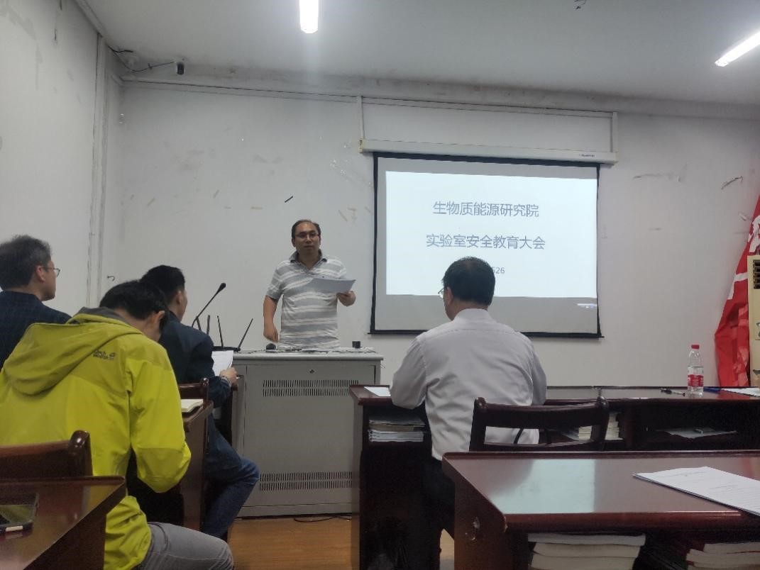5月26日下午,生物质能源研究院安全教育大会在学院会议室2311召开。院长雍阳春教授主持了会议,环安学院副院长赵如金教授代表学院参加了会议,研究院全体教师、博士后和包括留学生在内的硕、博士研究生参加了会议。