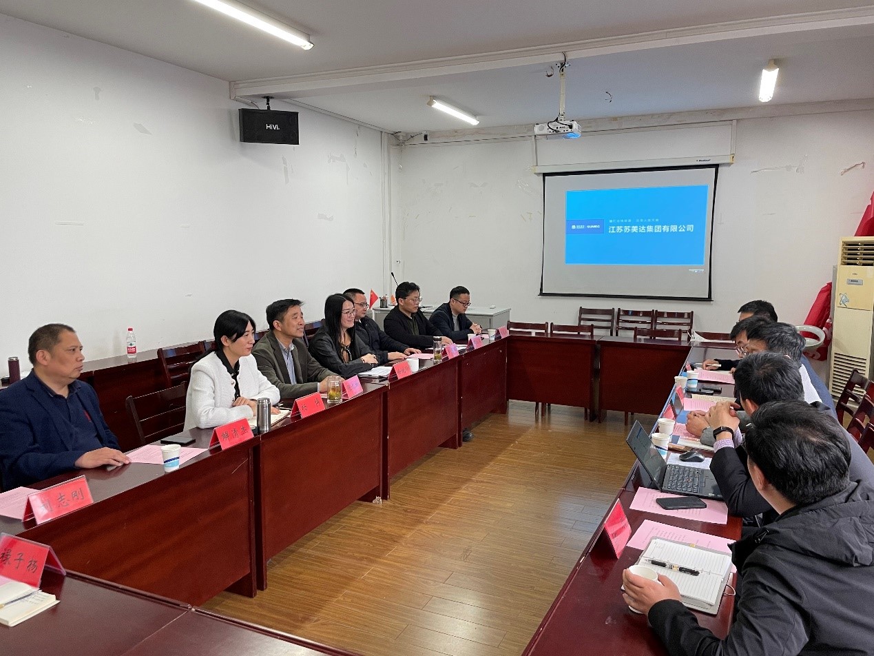会上,张九如书记介绍了苏美达和环安学院参会代表并致欢迎辞,杨博副书记介绍了学院专业及学生培养情况,徐婉珍副院长介绍了近几年学院的科研情况、科研团队及科研方向、学院产学研合作情况及典型案例。苏美达成套公司吴勇总监介绍了苏美达集团、苏美达成套公司整体情况及公司主要业务方向、以及土壤治理业务方面的典型案例;苏美达成套公司李举总经理详细介绍了水处理相关业务及典型工程案例。双方就进一步合作开展了初步意向商定。会后,苏美达代表参观了学院相关实验室。