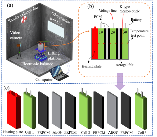 锂离子电池因其能量密度高、寿命长、自放电率低、携带方便、组装方便等强大优势,已成电动汽车、电子产品和储能设备的主要电源。然而,具有良好发展前景的锂离子电池也会存在明显的安全性问题,制约其应用和发展。热失控是锂离子电池安全问题的主要原因。在大规模应用中,锂离子电池通常是成组使用,单个电池在热滥用、机械滥用、电滥用等条件下会发生热失控行为,使相邻电池发生热失控,最终导致热失控传播。因此,研究电池模组的热失控传播行为,采用有针对性、有效的热失控传播抑制方法至关重要,这也可以为电池模块提供更可靠的安全性。