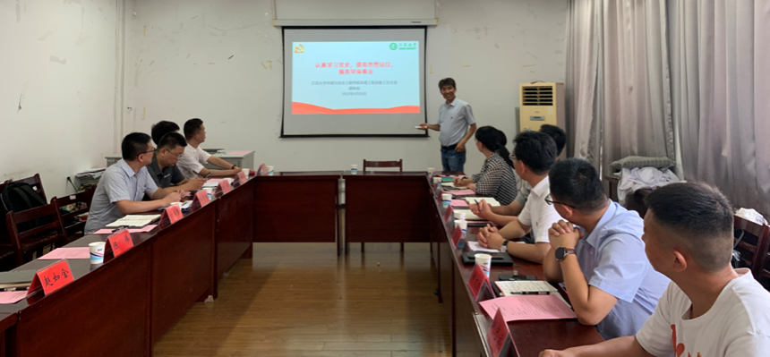 环境工程系教工党支部书记、yl6809永利官网集团副院长赵如金以“认真学习党史,提高思想站位,服务环保事业”为题讲了一堂内容丰富的党课。他带领大家共同学习了习近平总书记关于“四史”学习教育的重要论述,从为何学、学什么、怎么学等几个方面分享了自己的学习体会。随后,与会党员就如何加强党建工作进行了深入研讨。