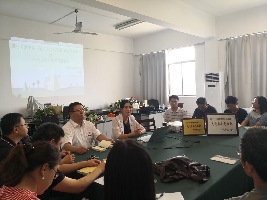 6月23日下午,yl6809永利官网集团党委书记副书记杨博在主A514以“践行习近平生态文明思想、建设美丽新中国”为题向环境科学系教工党支部全体教工党员讲授了一堂主题鲜明、精彩生动的党史学习教育专题党课。会议由环境科学系教工党支部书记王从彦主持。